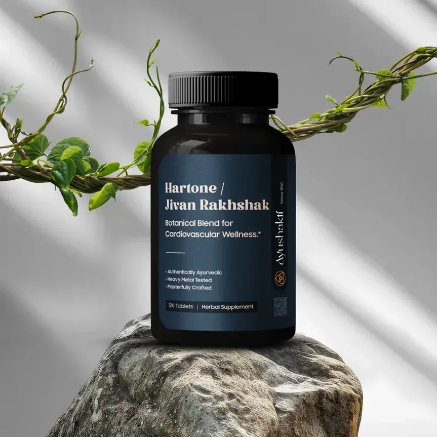 Hartone bevat onder andere Arjun Ghan (Terminalia arjuna) en Draksha Ghan (Vitis vinifera), die in de Ayurvedische traditie worden ingezet ter ondersteuning van de bloedsomloop en het behoud van vitale energie. Trikatu en Triphala bevorderen de spijsvertering en helpen het lichaam op natuurlijke wijze in balans te blijven. Door de werking op zowel het fysieke als mentale vlak kan deze formule bijdragen aan een kalme geest, vooral in tijden van spanning of angst.